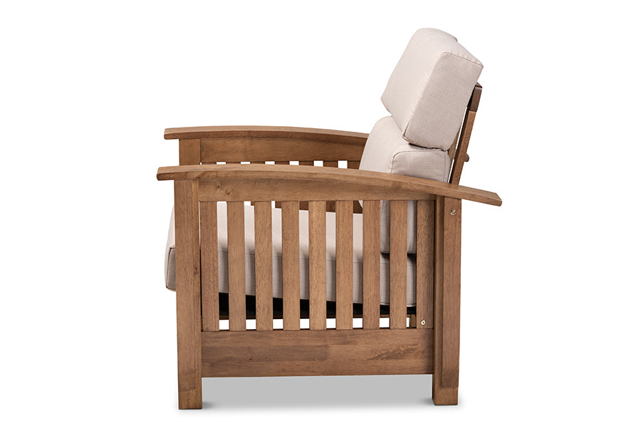 Baxton Studio Charlotte Modern Classic Mission Style Taupe Fabric Upholstered Walnut Brown Finished Wood 1-Seater Lounge Chair