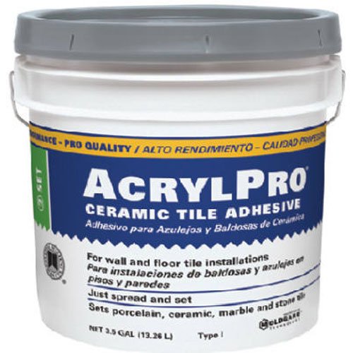 Acrylpro Ceramic Tile Adhesive 3.5 Gallon Premium Acrylic Mastic Easy To Trowel Exceptional Water Resistance Great For Shower Walls Ideal Over Drywall Protected My Moldgard Technology Coverage: Approximately 40-60 Ft Per Gallon Using A 316 X 532 V-Notch Trowel