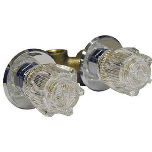 Chrome Plated, Shower Stall Faucet, Brass Body, Acrylic Handles, Replaceable Seats & Stems, 3-38 Inch Centers, Brass Waterway, Can Be Used With Either Bottom Or Top Water Supply